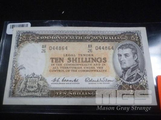 COMMONWEALTH OF AUSTRALIA 1961, 10 SHILLINGS BANKNOTE, COMBS/WILSON AH26 044 864