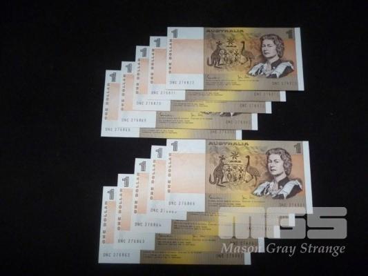 1982 10 x 1 DOLLAR CONSECUTIVE NOTES JOHNSTON STONE UNC