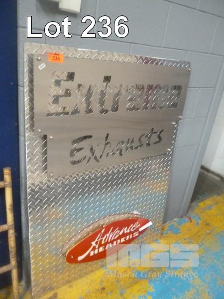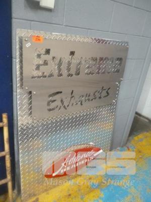 EXTREME EXHAUSTS STENCIL SIGNS & ADVANCE HEADERS PAINTED STENCIL SIGN, MOUNTED ON ALUMINUM CHECKER PLATE