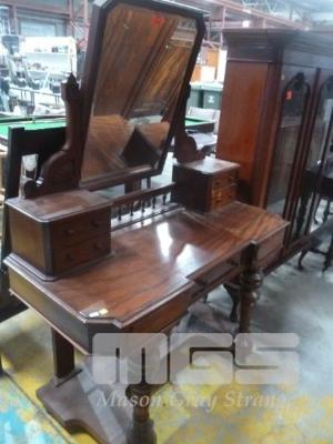MAHOGANY DRESSER, 5 x DRAWER, TURNED LEGS, TILT MIRROR