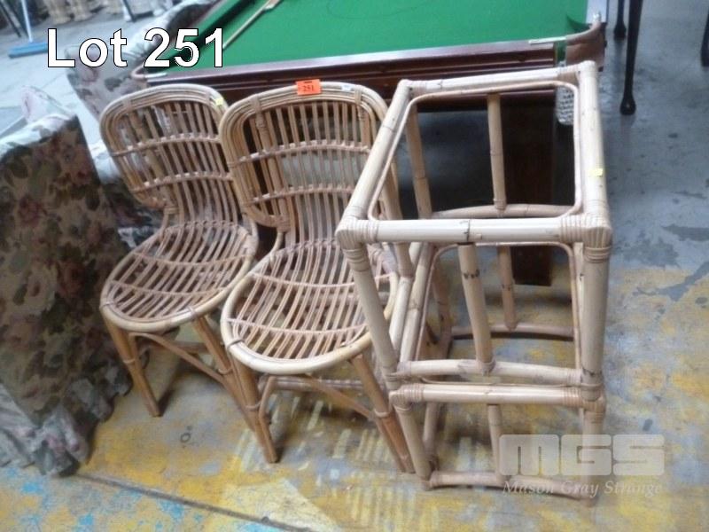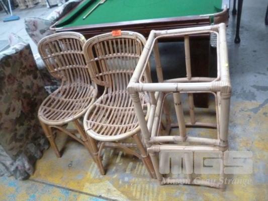 PAIR CANE DINING CHAIRS, WITH PAIR SIDE TABLES (NO GLASS)