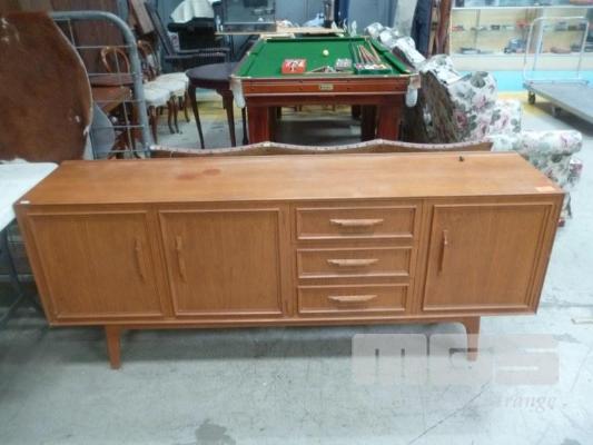 TEAK SIDEBOARD, FOOT LEGS, 3 DOOR, 3 DRAWER, 182cm (L) (NOTE - RED CIRCULAR STAINS ON TOP)