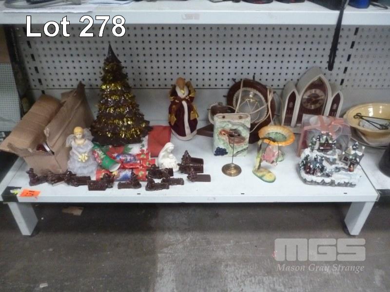 ASSORTED CHRISTMAS DECORATIONS, SEIKO CLOCK, ORNAMENTS ETC