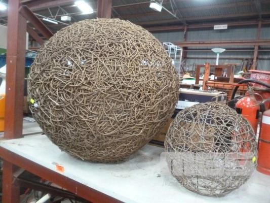 LARGE WICKER LIGHT SHADE & SMALLER WICKER DECOR