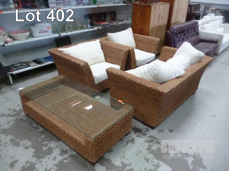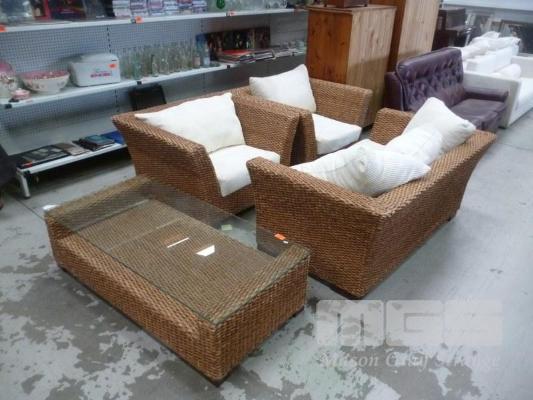 SEA-GRASS, 4 PIECE LOUNGE SUITE, INC; 2 SEATER, 2 X SINGLES & COFFEE TABLE (2 X CUSHION ZIPS REQUIRE REPLACING)