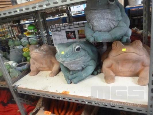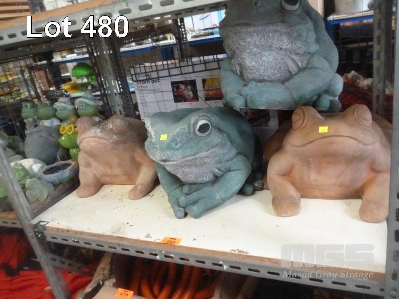 4 x LARGE GARDEN FROG ORNAMENTS, RESIN & PLASTER