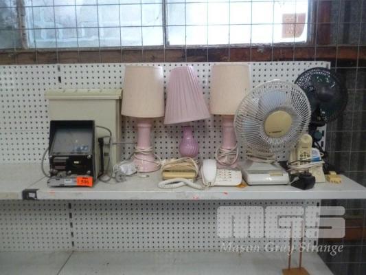ASSORTED TABLE LAMPS, DESK FANS, TELEPHONES & 8mm FILM EDITOR