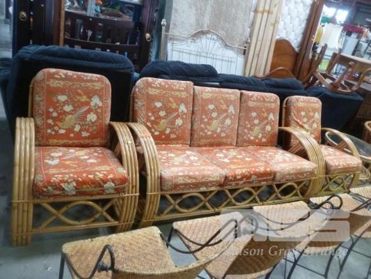 CANE 3 PIECE LOUNGE SUITE, CURVED ARMS, 3 SEATER & 2 x SINGLES