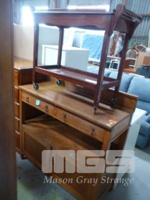 OAK SIDEBOARD, 2 DOOR/DRAWER, MIDDLE SHELF & TRAY MOBILE