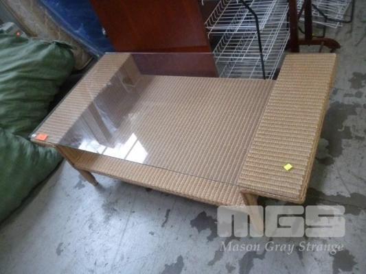 RECTANGULAR WICKER COFFEE TABLE, GLASS TOP