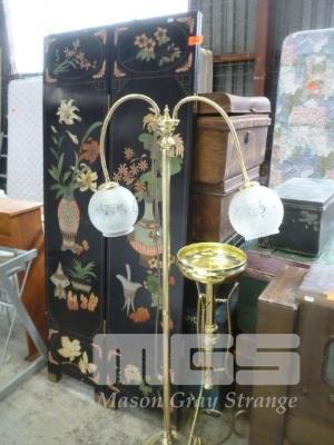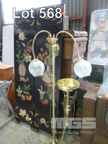 TIMBER 4 PANEL PRIVACY SCREEN, BRASS STANDARD LAMP & JARDINIERE