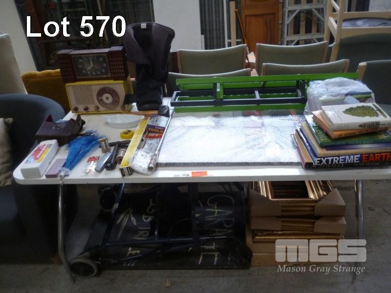 GOLD GILT PICTURE FRAMES, A-FRAME SIGN, MOBILITY WALKERS, PHILIPS VALVE RADIO, BOOKS ETC