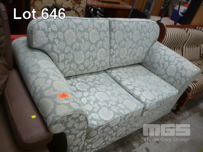 BLUE FLORAL FABRIC 2 SEATER LOUNGE, ROLL ARM