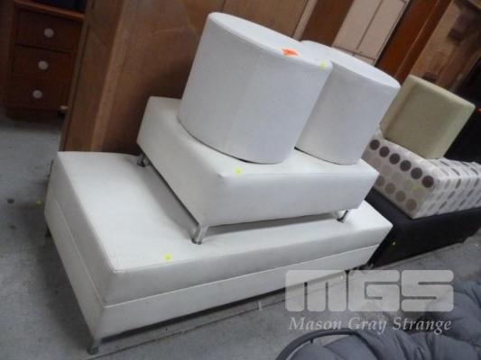 4 x BEIGE VINYL OTTOMANS INCLUDING LONG, CENTRE & PAIR SMALL ROUND