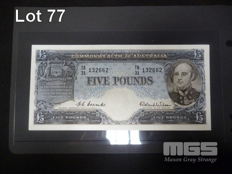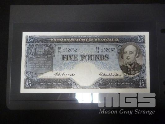 1954 5 POUND NOTE, COOMBS WILSON CRISP NOTE APPEARS HIGH GRADE