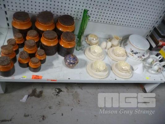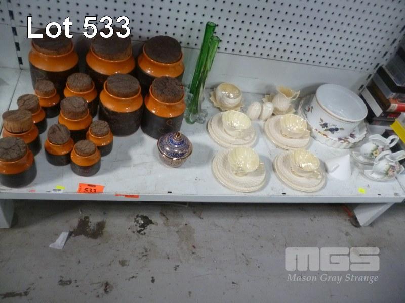 RETRO KITCHEN CANISTER SET, BELLEK IRELAND TEA SET, ETC