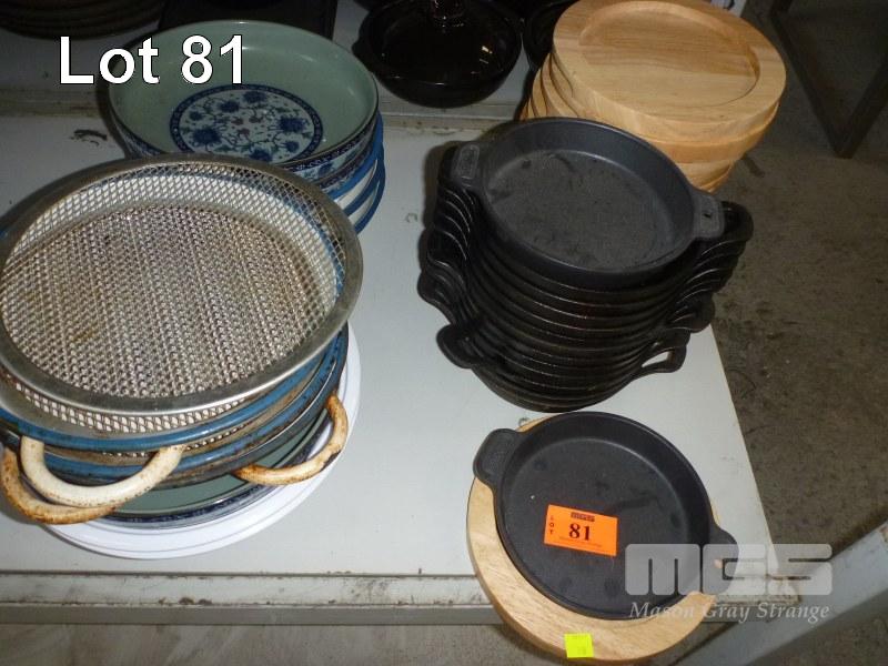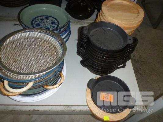 14 x SIZZLE PLATES, RATIONAL, 17cm, 12 x BOARDS & ASSORTED BOWLS