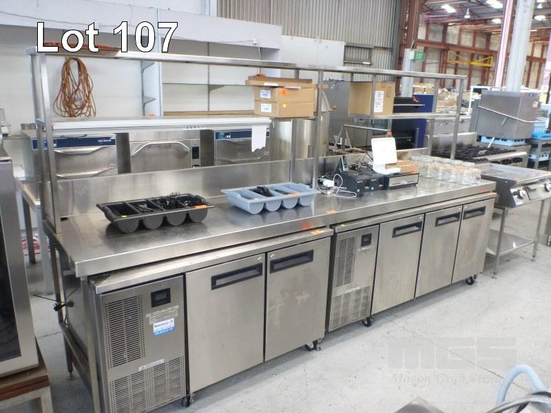 STAINLESS STEEL PREP BENCH, 325 x 70cm, SPLASHBACK & OVERSHELF