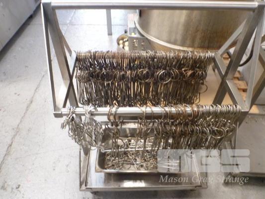 2 x STAINLESS STEEL HANGING DUCK TROLLEYS, 120 x 75cm