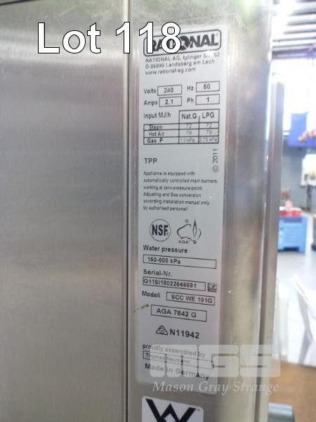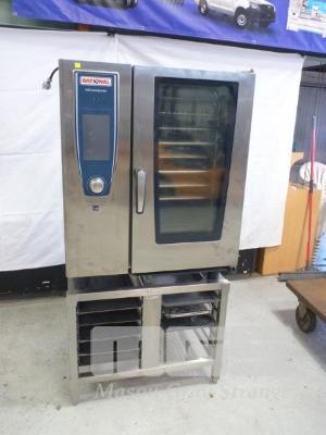 COMBI OVEN, RATIONAL SELF COOKING CENTRE MODEL: SCC WE 101G S/NO: G11SI18022646691 NATURAL GAS, 240V 10 TRAY, STAINLESS STEEL CASED, SENSOR TOUCH CONTROL ON HEAVY DUTY 10 TRAY STAINLESS STEEL STAND WITH RATIONAL VARIOSMOKER & 20 x RATIONAL TRAYS & PLATES