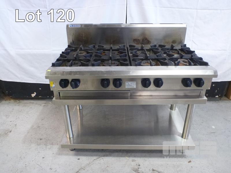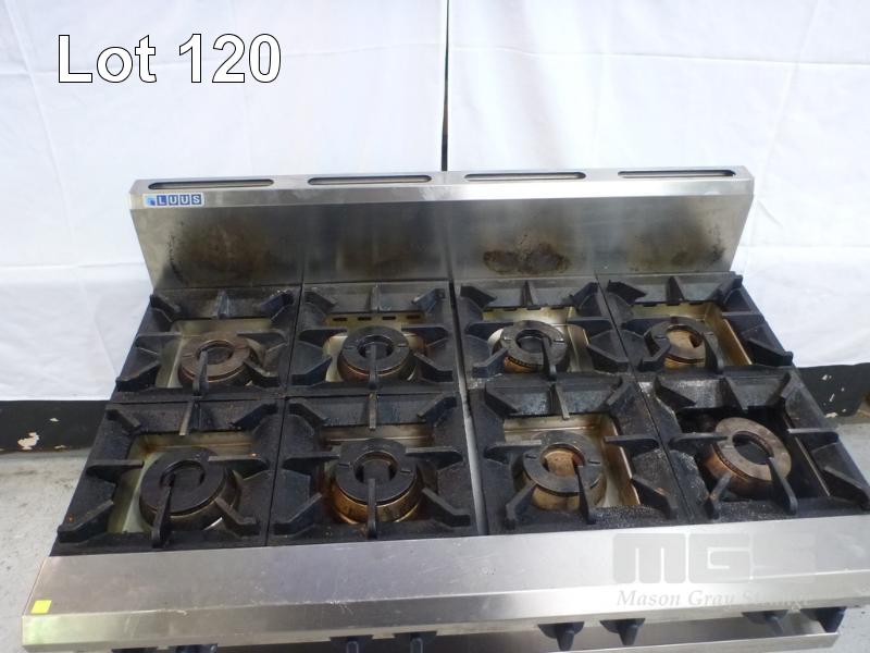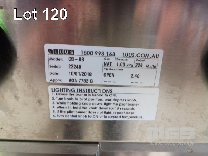 8 BURNER STOVE, LUUS MOD: CS-8B DOM: 2018 GAS FIRED, STAINLESS STEEL CASED (MISSING 1 x SPILL BOWL)