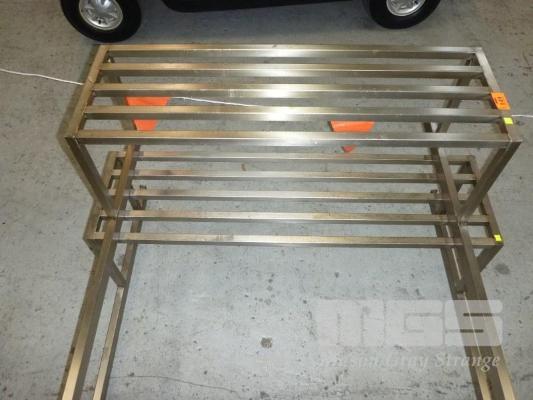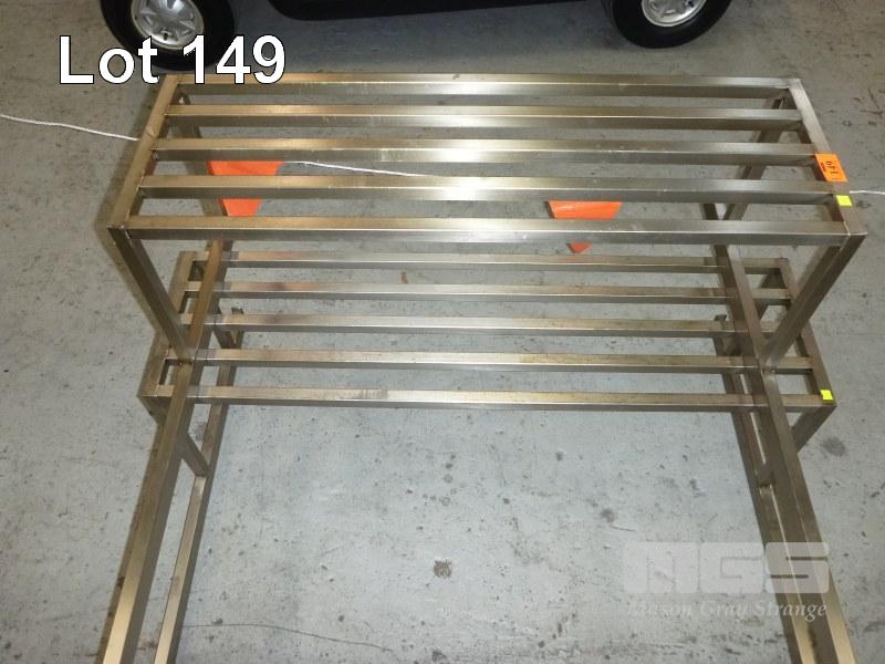 2 x STAINLESS STEEL OVERHEAD EXHAUST CANOPY PIPE POT RACKS, 125 x 102cm & 105 x 102cm