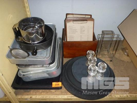 ASSORTED BAKING & SERVING TRAYS, SALT & PEPPER SHAKERS, ETC