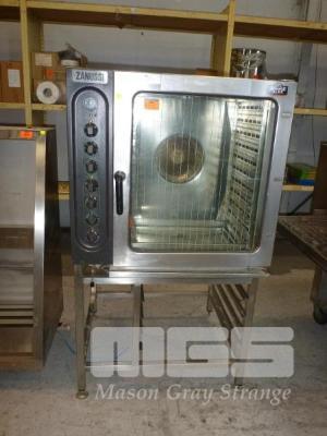 COMBI OVEN, ZANUSSI 10 TRAY CAPACITY STAINLESS STEEL CASED, GAS ON STAND (STEAM ISSUES)