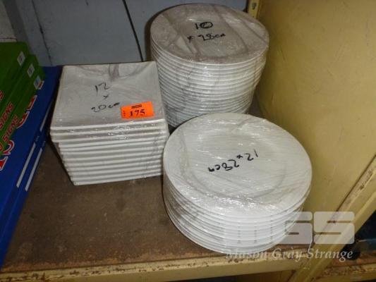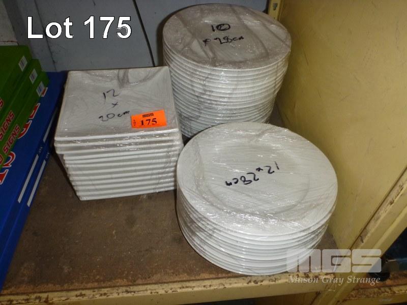 22 x WHITE PLATES, 28cm & WHITE SQUARE PLATES