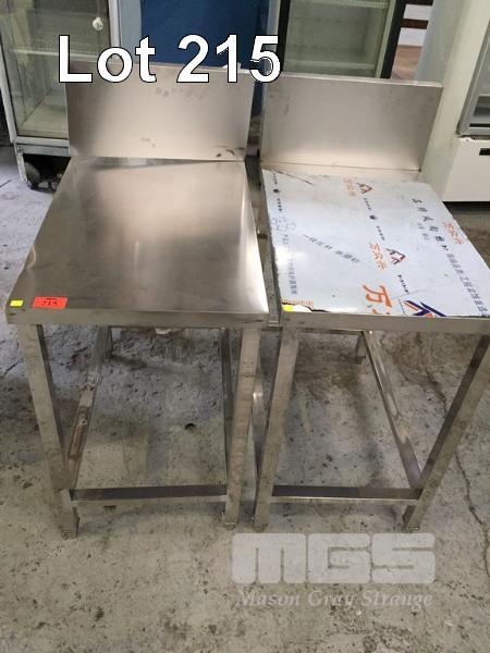 2 x STAINLESS STEEL INFIL BENCHES, 50 x 80cm WITH SPLASHBACK