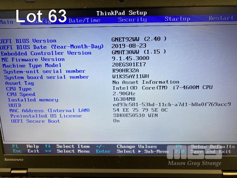 LAPTOP, LENOVO THINKPAD W541 (20EGS01E17), CORE i7 4600M (4TH GEN) @ 2.9GHz, 16GB DDR3 RAM, 275GB SSD, DVD-RW, 15.6" WIDESCREEN (1920x1080), INTEL HD VIDEO, 2GB NVIDIA QUADRO K1100M VIDEO, Wi-Fi, BLUETOOTH, WINDOWS 10 PRO INSTALLED & POWER SUPPLY S/N:R90HR3ZA