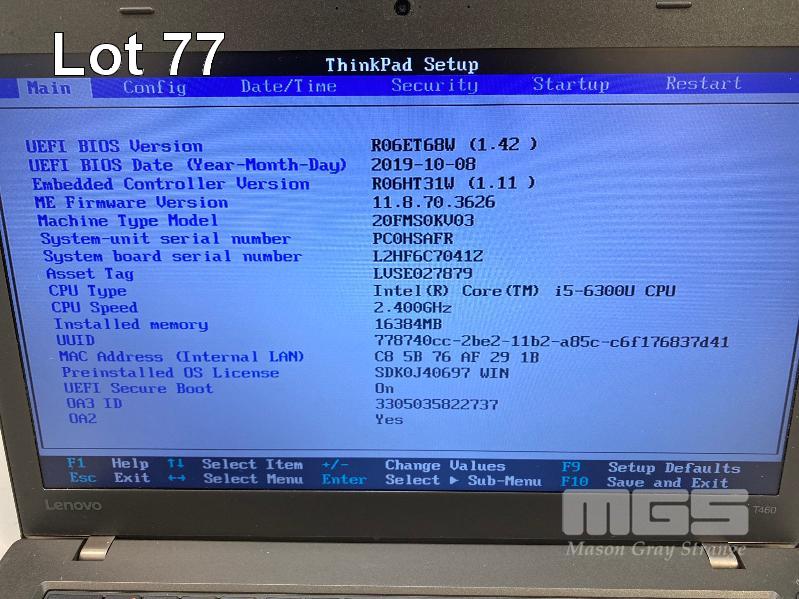 LAPTOP / ULTRABOOK, LENOVO THINKPAD T460 (20FMS0KV03), CORE i5 6300U (6TH GEN) @ 2.4GHz, 16GB DDR3 RAM, 525GB SSD, 14" WIDESCREEN (1366x768), INTEL HD VIDEO, Wi-Fi, BLUETOOTH, WINDOWS 10 PRO INSTALLED, POWER SUPPLY & CARRY BAG (NOTE: SOME KEYS FADED) S/N:PC0HSAFR