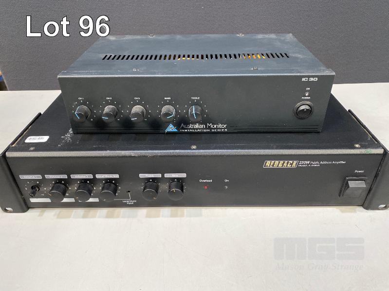 REDBACK 250W PUBLIC ADDRESS AMPLIFIER, A4385A AUSTRALIAN MONITOR IC30 AMPLIFIER