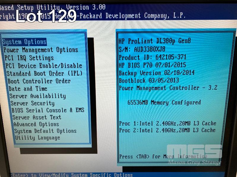 RACKMOUNT SERVER, HP PROLIANT DL380p Gen8, 2U, 2 x XEON E5-2665 0 @ 2.4GHz PROCESSORS, 64GB RAM, 6 x 900GB SAS HDD, DVD-RW, 2 x 750W PSU WITH RAILS S/N:AUD3380XJ8