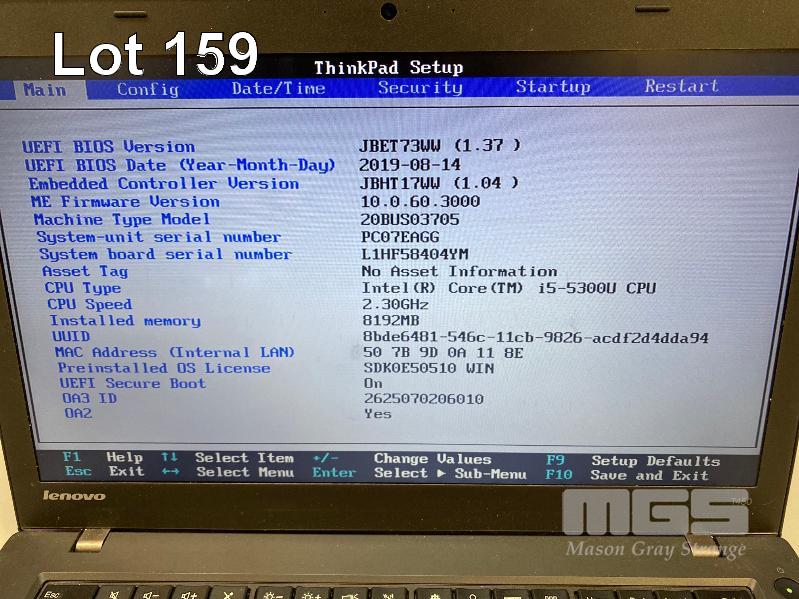 LAPTOP / ULTRABOOK, LENOVO THINKPAD T450 (20BUS03705), CORE i5 5300U (5TH GEN) @ 2.3GHz, 8GB DDR3 RAM, 250GB SSD, 14" WIDESCREEN (1366x768), INTEL HD VIDEO, Wi-Fi, BLUETOOTH, WINDOWS 10 PRO INSTALLED & POWER SUPPLY S/N:PC07EAGG