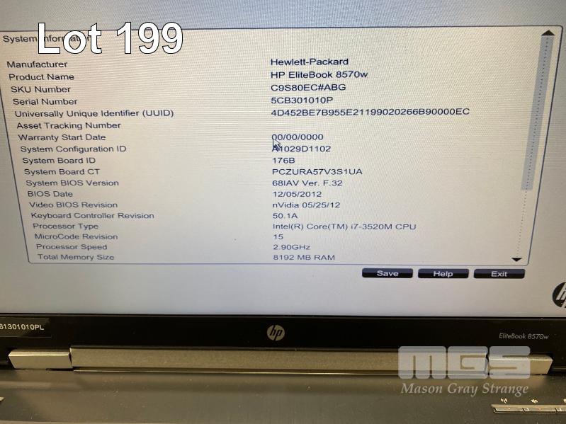 LAPTOP, HP ELITEBOOK 8570w (C9S80EC), CORE i7 3520M (3RD GEN) @ 2.9GHz, 8GB DDR3 RAM, 500GB SATA HDD, DVD-RW, 15.6" WIDESCREEN (1920x1080), 2GB NVIDIA QUADRO K1000M VIDEO, Wi-Fi, BLUETOOTH, WINDOWS 7 PRO INSTALLED W/ LICENSE, DOCKING STATION, POWER SUPPLY & CARRY BAG S/N:5CB301010P
