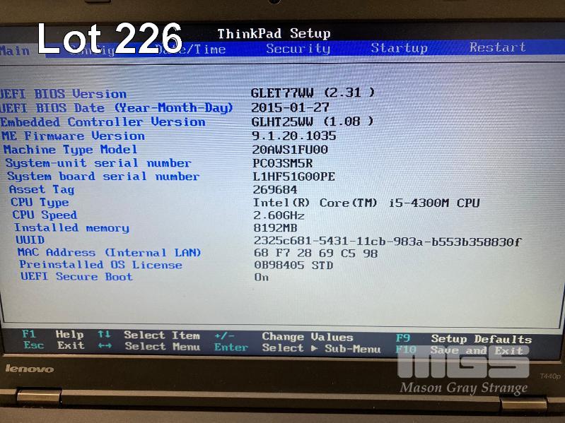 LAPTOP, LENOVO THINKPAD T440p (20AWS1FU00), CORE i5 4300M (4TH GEN) @ 2.6GHz, 8GB DDR3 RAM, 128GB SSD, DVD-RW, 14" WIDESCREEN (1600x900), INTEL HD VIDEO, Wi-Fi, BLUETOOTH, WINDOWS 10 HOME INSTALLED & POWER SUPPLY S/N:PC03SM5R