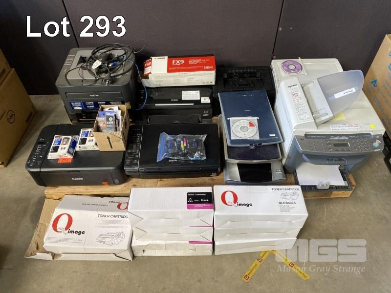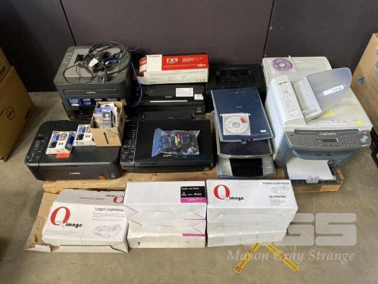 1 x PALLET LOT ASST INKJET & LASER PRINTERS, CANON FLATBED SCANNERS, ASST TONER CARTRIDGES