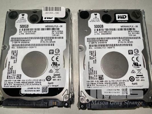 6 x 500GB SATA HARD DRIVES, 2.5", WD WD5000LPLX-08