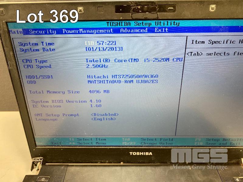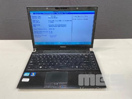 LAPTOP, TOSHIBA PORTEGE R830 (PT321A-01K00201), CORE i5 2520M (2ND GEN) @ 2.5GHz, 4GB DDR3 RAM, 500GB SATA HDD, DVD-RW, 13.3" WIDESCREEN & POWER SUPPLY (NOTE: HARD DRIVE FAULTY, MISSING LEFT SCREEN HINGE COVER) S/N:8B116017H