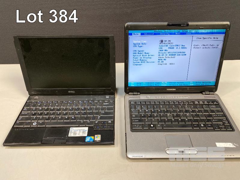 4 x LAPTOPS INC. DELL LATITUDE D420, CORE DUO 1.2GHz, 1.5GB RAM, 80GB HDD DELL LATITUDE E6500, CORE 2 DUO P8600 @ 2.4GHz, 4GB RAM, NO HDD, NO CADDY DELL LATITUDE E4200, CORE 2 DUO U9600 @ 1.6GHz, 3GB RAM, 120GB HDD (NO BATTERY, DAMAGE TO CASING) TOSHIBA PORTEGE M800, CORE 2 DUO P8600 @ 2.4GHz, 4GB RAM, 320GB HDD (ALL WITH POWER SUPPLIES) S/N:DKXXP1S, 95K422S, 35PD62S, 88267073W