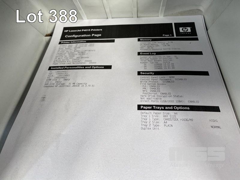 PRINTER, HP LASERJET P4015n, USB, NETWORK, 230,210 PAGES (TEST PAGE ATTACHED - POOR QUALITY) S/N:CNFY367673