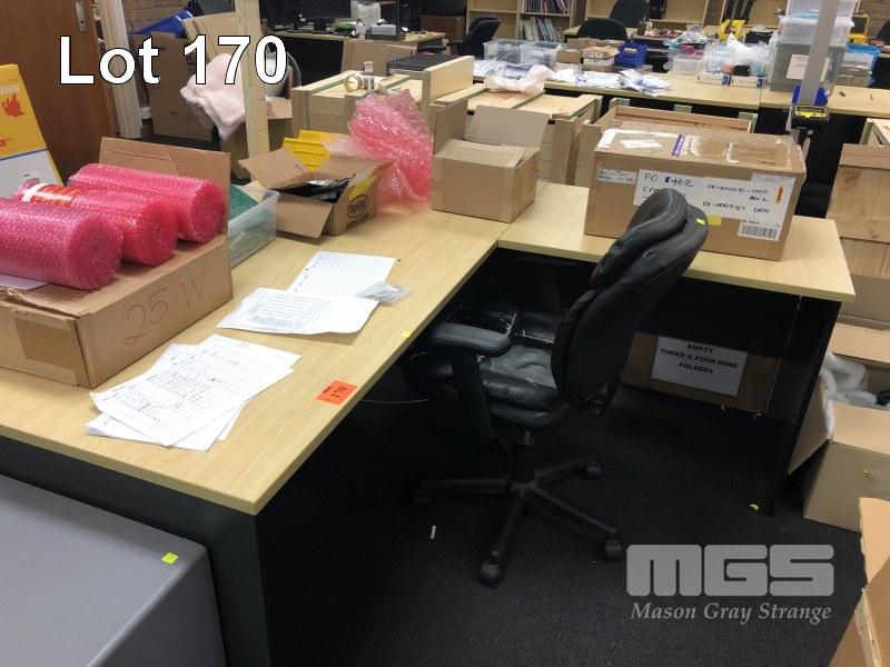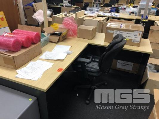 DESK WITH RETURN, 2 TONE BEECH/STORM LAMINATE, 180 x 80cm,