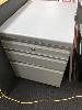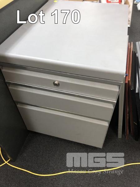 GAS LIFT OFFICE CHAIR, BLACK FABRIC (FABRIC TORN) & GREY STEEL UNDERDESK MOBILE