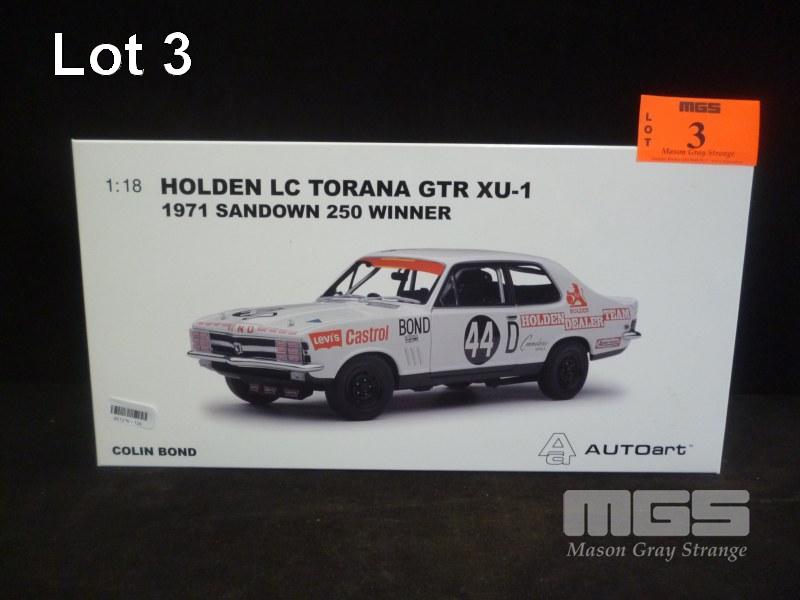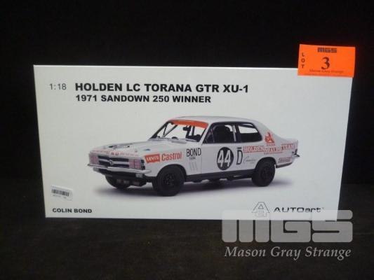 AUTOART, 1:18 SCALE, HOLDEN LC TORANA, GTRXU-1, 1971 SANDOWN 250 WINNER, IN ORIGINAL BOX, WITH COA