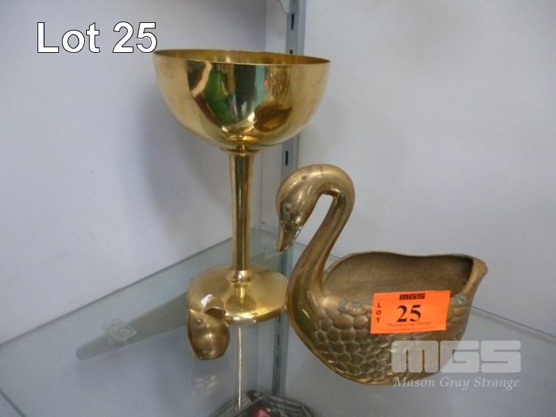 BRASS CHALICE, SWAN VASE & MOUSE
