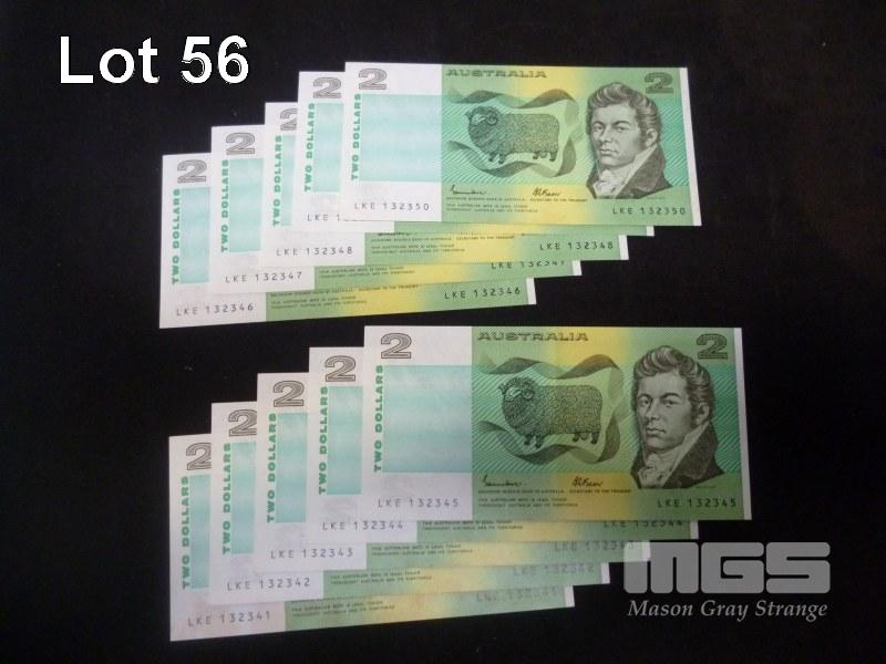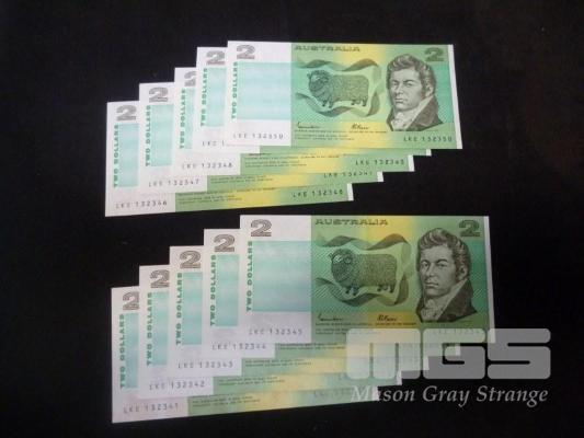 1985 10 x $2.00 CONSECUTIVE NOTES JOHNSTON FRAZER UNC