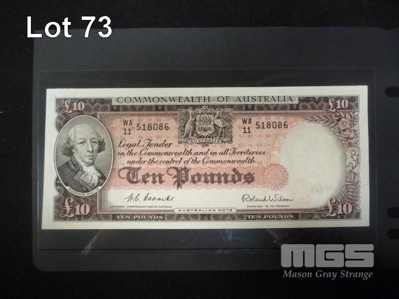 1954 10 POUND AUSTRALIAN NOTE COOMBS WILSON APPEARS HIGH GRADE