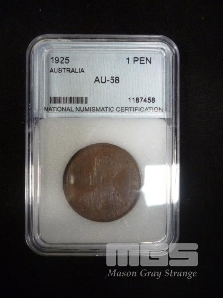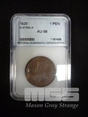 1925 RARE HIGH GRADE AUST PENNY 2ND GRADED AU58