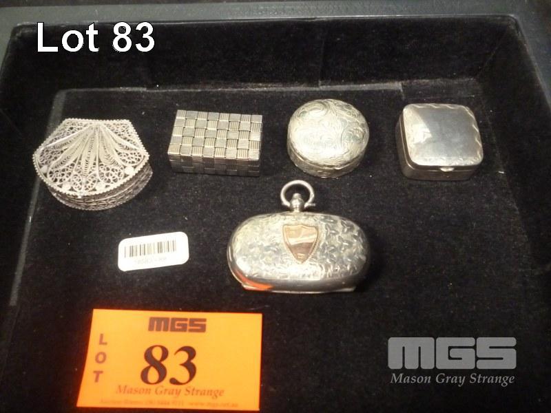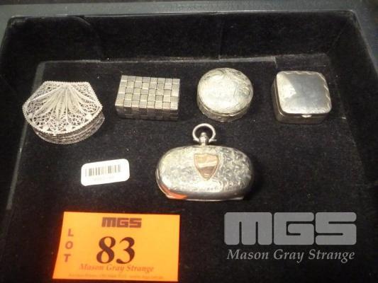 STERLING SILVER & HALLMARKED PILL BOXES & COIN HOLDER WITH 9ct GOLD INLAY